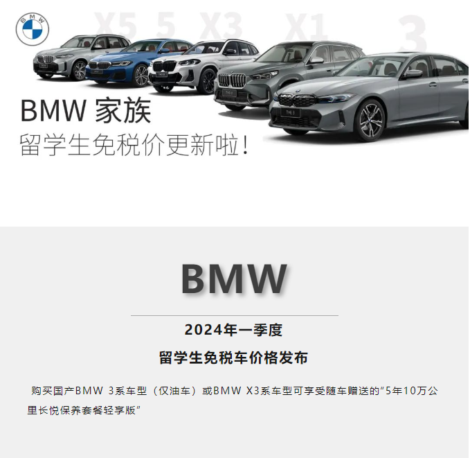 | 当前位置: 最新动态 - 免税快讯 - 华晨宝马 2024年1季度留学生免税车价格发布 | |