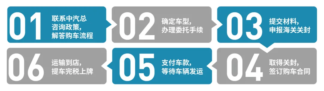 留学回国人员需咨询中汽总地区负责人确定资质是否符合要求,材料备齐后即可开启购车流程: 1.联系中汽总地区负责人,咨询政策,解答购车流程; 2.确定好车型后,中汽总协助办理委托手续; 3.中汽总协助提交材料,申办海关关封; 4.取得关封,与中汽总签订购车合同; 5.下单后待厂家匹配车辆,支付车款,等待车辆发运; 6.厂家发车到指定城市的4S店,凭购车发票和身份证件到店提车后办理上牌。