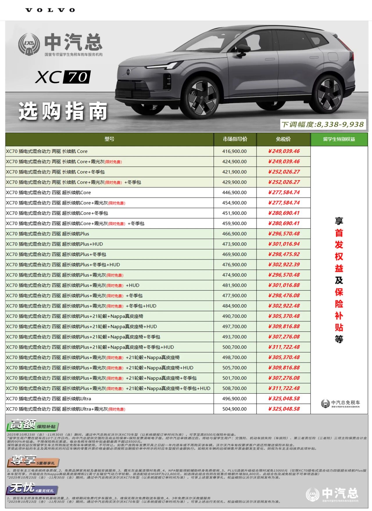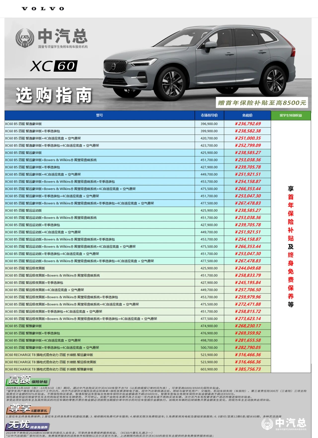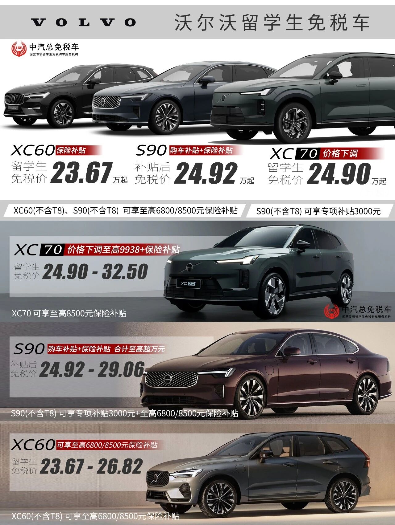 年终大促!补贴+权益+下调 沃尔沃留学生免税车优惠开启 仅限(XC60/XC70/S90)车型,限时活动!要注意好时间哦